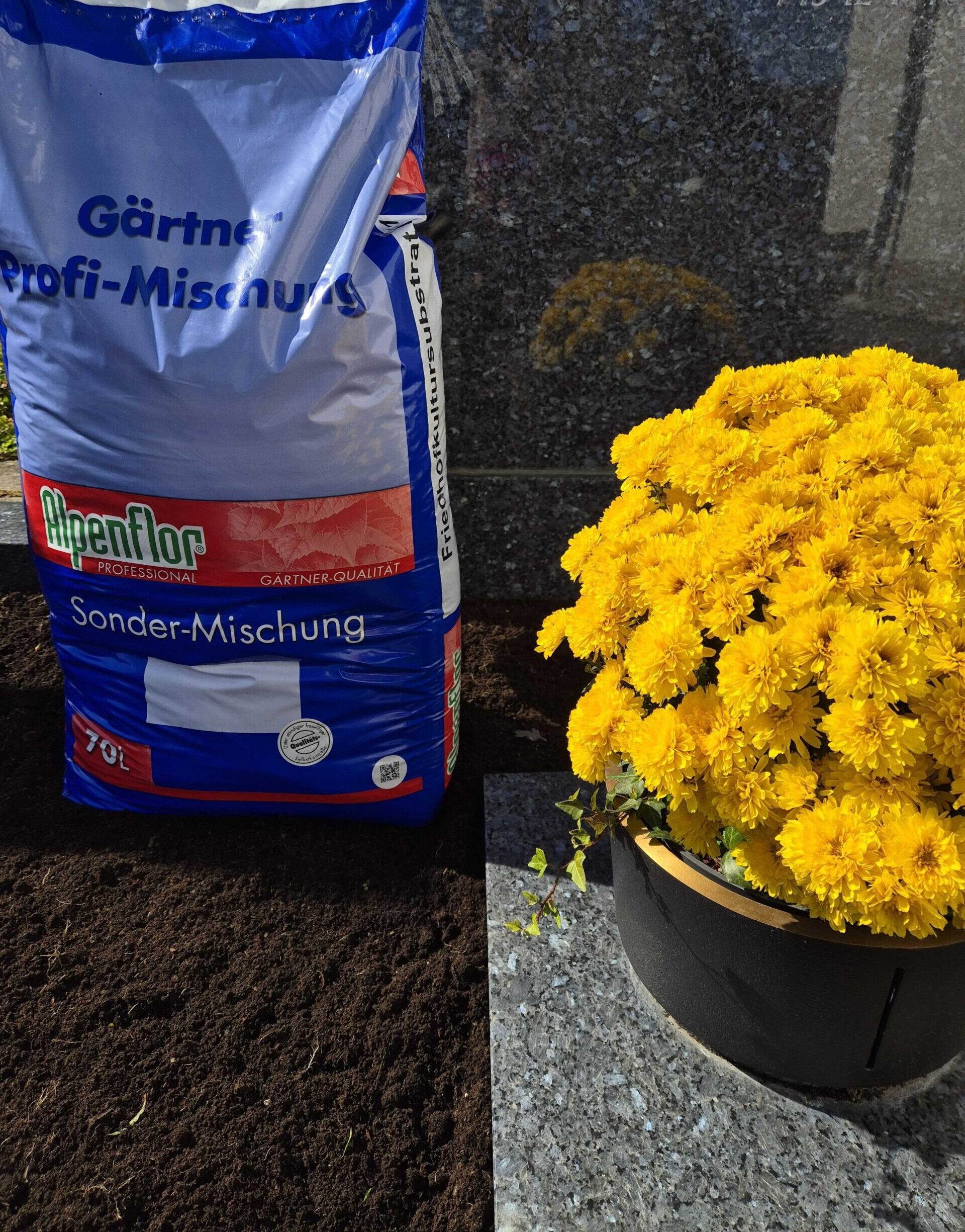 Unsere Graberde ist optimal für die Pflege von Gräbern und Beeten. Sie unterstützt gesundes Pflanzenwachstum und sorgt für eine schöne Optik über lange Zeit.